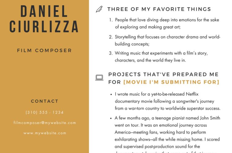 I think the most important step for this is not cold call every composer you can find, but instead be super focused and intentional about who you want to work with. This way, you’re channeling all of your energy to presenting a very compelling proposal to the people you DO contact.